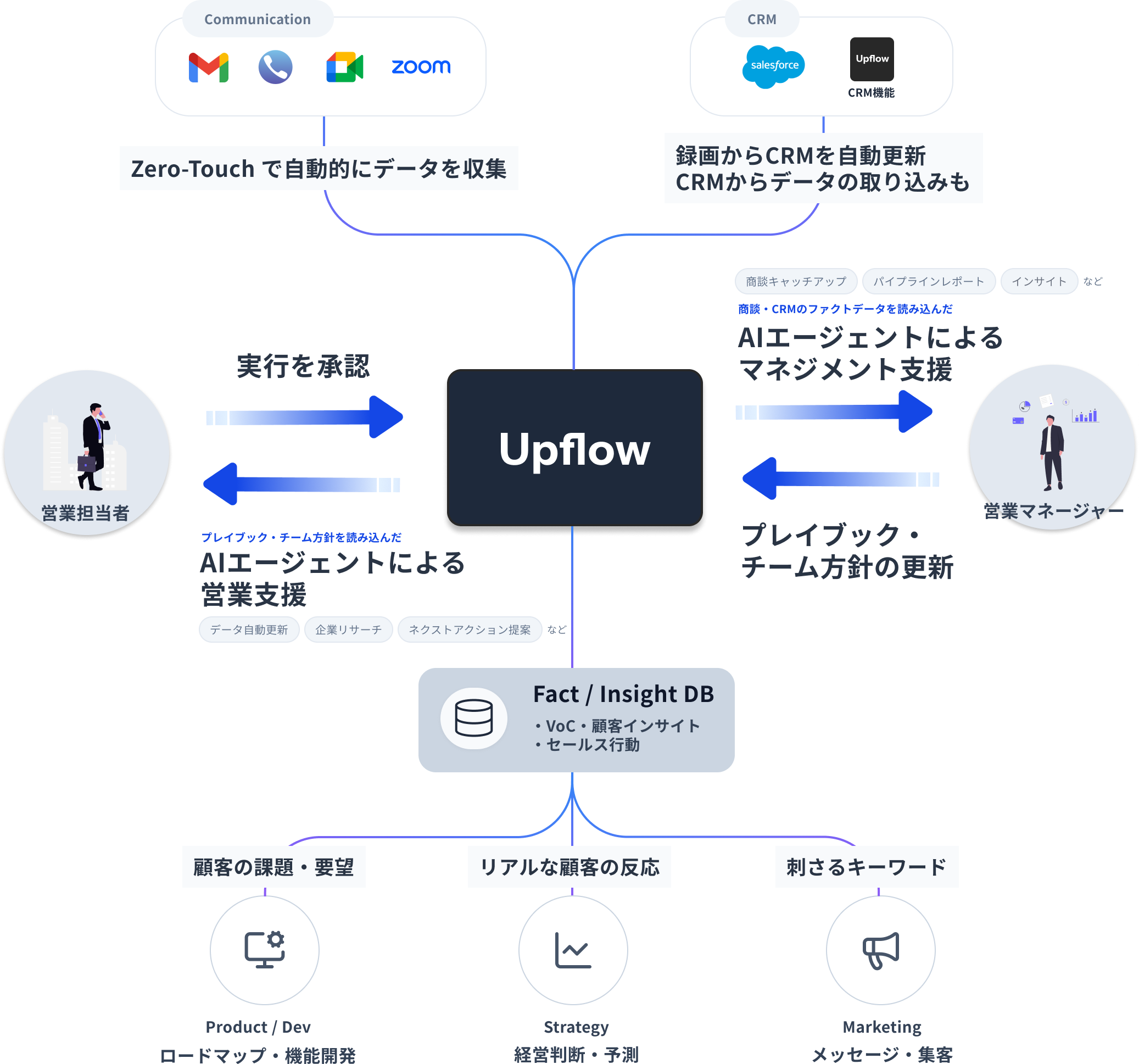 Upflowは、顧客接点で生まれる「VoC(顧客の声)」を起点に
